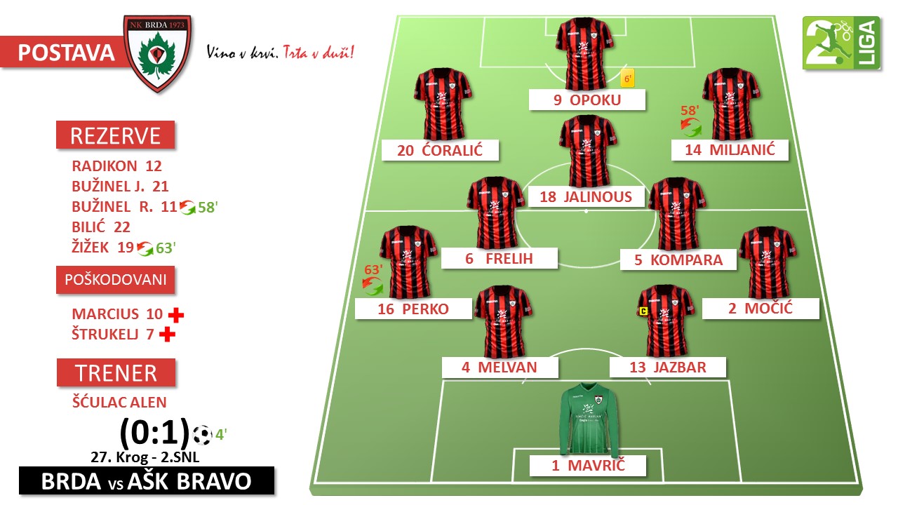 2.SNL; Brda : AŠK Bravo - 0:1 (0:1)